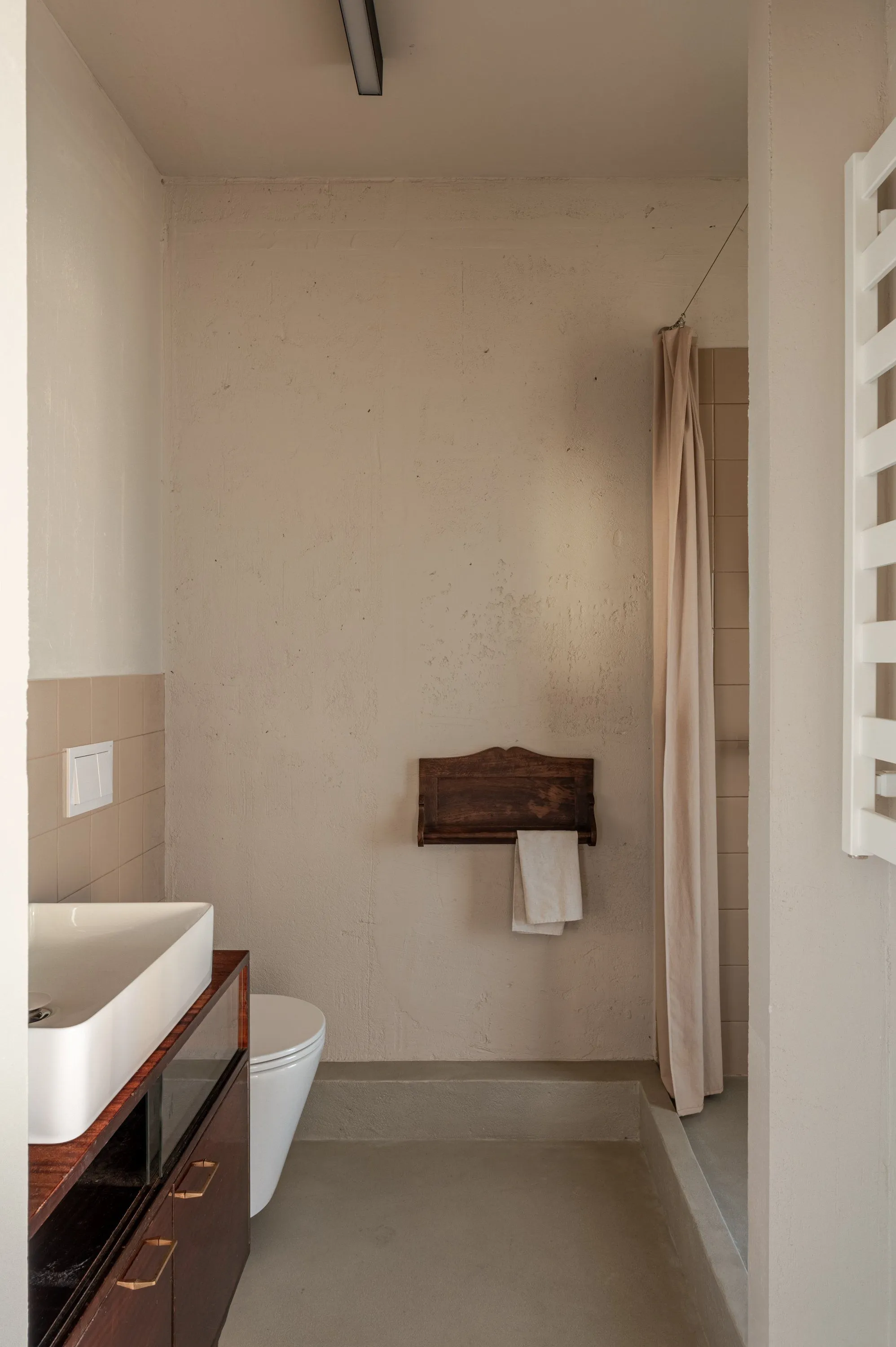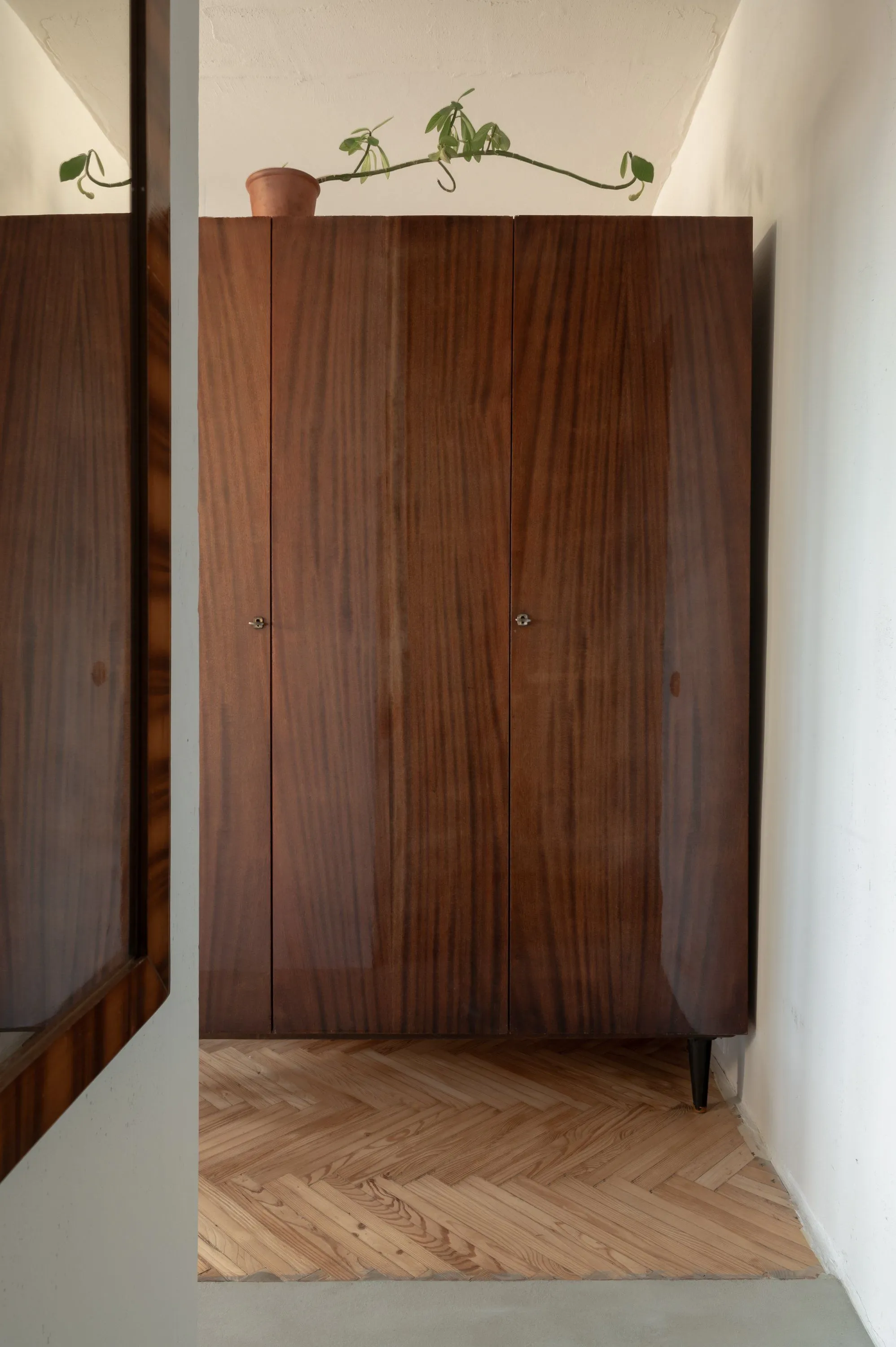 У кімнаті - шафа від меблевої фабрики «Карпати», у санвузлі — така ж тумба. Типові меблі радянського періоду, які раніше були чи не у кожкому помешканні, гармонійно влилися у новостворений простір. Ці предмети можуть не лише йти на утилізацію, а й залишатися у сучасних квартирах.
